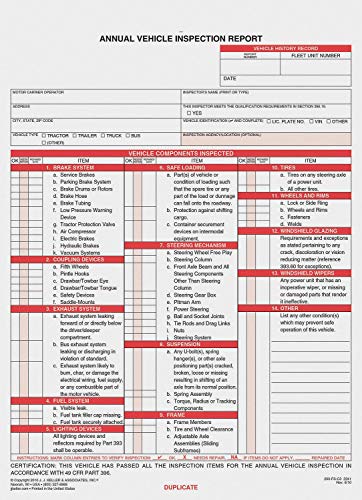 Annual Vehicle Inspection Form: Carbonless, 2 Plies, 10 PK - Grainger J.J. Keller annual vehicle inspection report (DVIR) helps you meet DOT's annual vehicle inspection requirements under 49 CFR 396.21. Provides full reporting on the 13 required inspection categories. Includes form and fade-resistant decal. Continuous format. 2-ply, carbonless. Form and decal are consecutively numbered. Compare this product