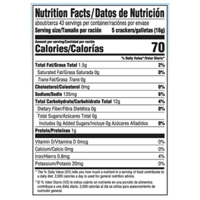 Calories in Zesta Saltine Crackers, Reduced Sodium - Fitbit Comprehensive nutrition resource for Zesta Saltine Crackers, Reduced Sodium. Learn about the number of calories and nutritional and diet information for Zesta Saltine Crackers, Reduced Sodium. This is part of our comprehensive database of 40,000 foods including foods from hundreds of popular restaurants and thousands of brands. Zesta Saltine Crackers, Original: Calories, Nutrition ... - Fooducate Personalized health review for Zesta Saltine Crackers, Original: 60 calories, nutrition grade (C plus), problematic ingredients, and more. Learn the good & bad for 250,000+ products. Calories in Keebler Zesta Fat Free Saltine Crackers and ... - FatSecret There are 60 calories in 5 crackers (16 g) of Keebler Zesta Fat Free Saltine Crackers. Get full nutrition facts for other Keebler products and all your other favorite brands. ... (16 g) of Keebler Zesta Fat Free Saltine Crackers. Calorie breakdown: 0% fat, 93% carbs, 7% protein. Related Crackers from Keebler: Club Crackers Minis Multi-Grain ... PDF Kellogg's Zesta Saltines Crackers .2oz 500ct - WebstaurantStore serving of food contributes to a daily diet. 2,000 calories a day is used for general nutrition advice. Ingredients: Enriched flour (wheat flour, niacin, reduced iron, vitamin B1 [thiamin mononitrate], vitamin B2 [riboflavin], folic acid), soybean oil (with TBHQ for freshness), salt, corn