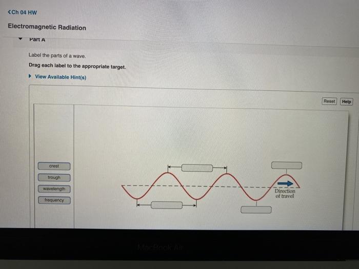 Solved Label the parts of a wave. Drag each label to the - Chegg Label the parts of a wave. Drag each label to the appropriate target. Classify these relationships between the properties of waves as directly proportional or inversely proportional. Drag each item to the appropriate bin. Question: Label the parts of a wave. Drag each label to the appropriate target.