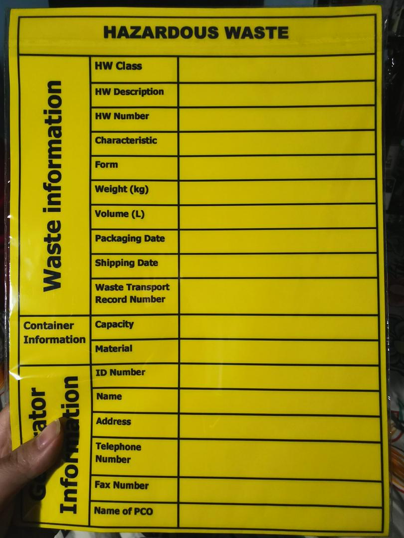 Hazardous Waste Labeling and Marking | Clean Management Hazardous Waste Markings. Each Hazardous Waste Container must have a yellow Hazardous Waste Marking as shown below. The hazardous waste container must contain the words "Hazardous Waste.". In addition, they need the following hazardous waste labels and markings: There needs to be one marking per drum, or 2 markings per tote/cubic yard box ...