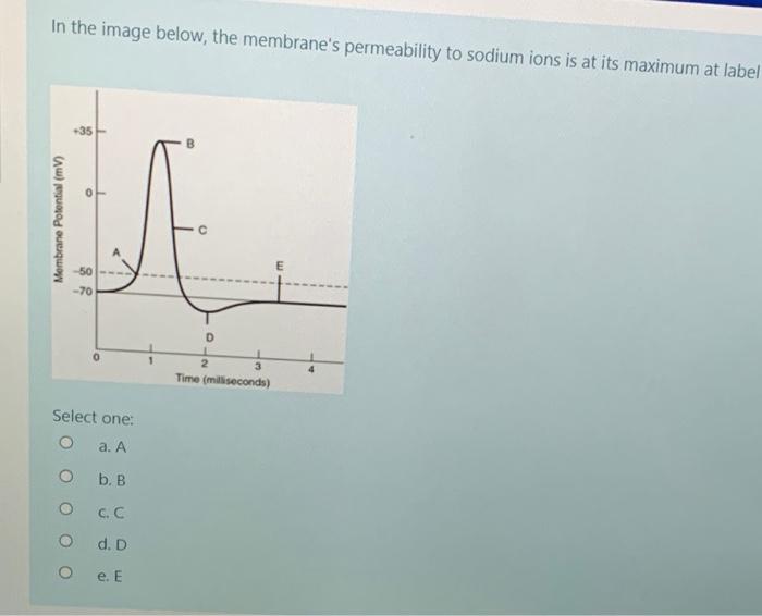 Question 14 0 / 1 point The image provided represents the action potential trace of mammalian motor neuron, The membrane's permeability to sodium ions is at its maximum at label, 2 1, Timto ...