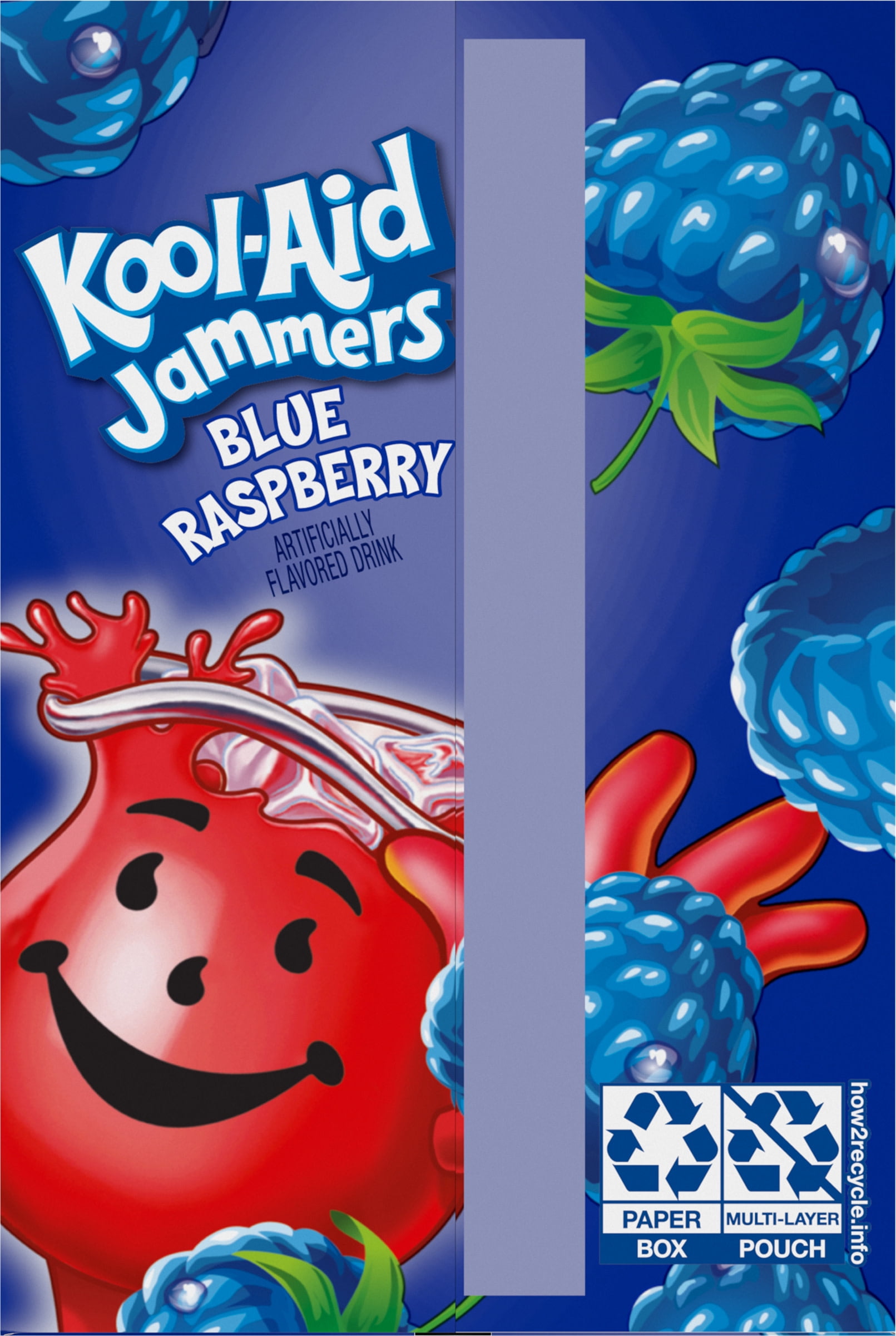 Kool-Aid Jammers Blue Raspberry Flavored Juice Drink (40 Pouches, 4 ... Kool-Aid Jammers artificially flavored Blue Raspberry Drink Pouches deliver fun with a sweet blend of raspberry flavor. Our delicious blue raspberry artificially flavored drink contains 55% less sugar than leading regular sodas, making it a great fruit flavored drink for kids to enjoy.