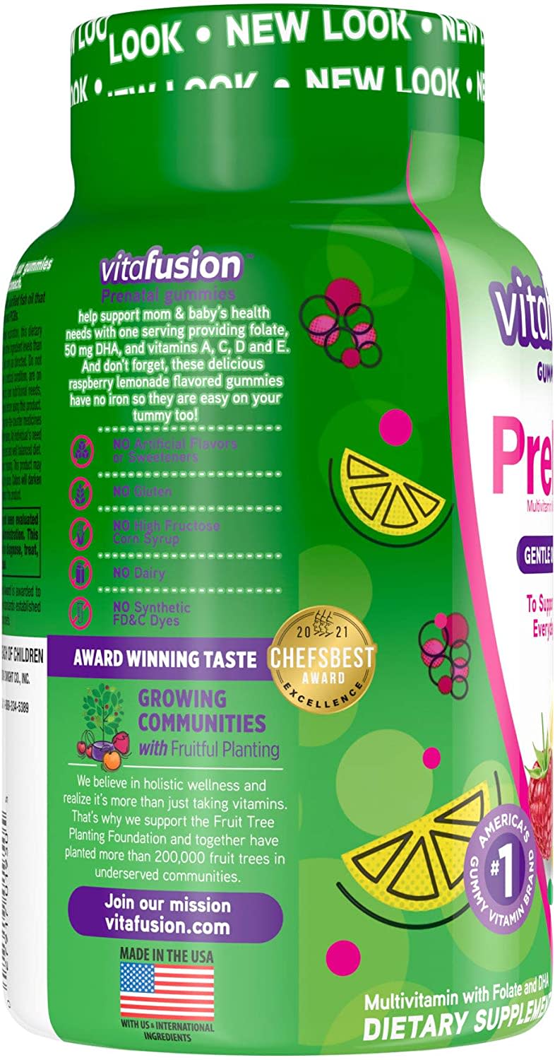 vitafusion PreNatal Gummy Vitamins, Raspberry Lemonade Flavored, Pregnancy Vitamins for Women, With Folate and DHA, America's Number 1 Gummy Vitamin ...