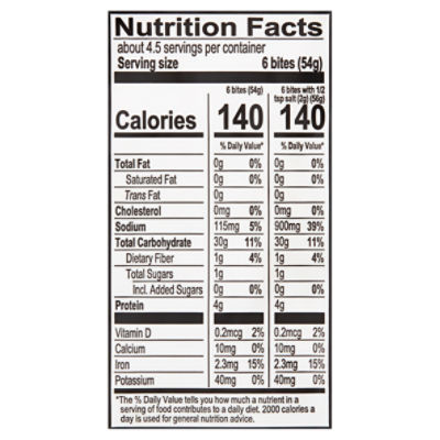 SuperPretzel Soft Pretzels Baked - 6 CT :: Directions for Me Directions. Oven or Microwavable. Keep frozen until ready to use. Heating Instructions: Conventional or Toaster Oven: 1. Preheat oven to 400 degrees F. 2. Place frozen pretzel (s) on a cookie sheet or foil. 3. If desired, moisten pretzel (s) with a small amount of water, then sprinkle with about 1/2 tsp. salt provided (per pretzel). 51% Whole Grain Soft Pretzels - J&J Snack Foods Corp. SUPERPRETZEL® 51% Whole Grain Pretzels Provides various grains/breads for the Child Nutrition Program Available in many sizes with individually wrapped and bulk packed varieties Delivers up to 4 g fiber per pretzel, depending on size Simply heat and serve PURCHASE Product Information SuperPretzel Pretzels, Baked, Soft, Original: Calories, Nutrition ... Nutrition Serving Size: 1 pretzel (64g) Amount per Serving My Daily Value Calories 160 Kcal 9% Total Fat 1 g 2% Saturated Fat 0 g 0% Trans Fat 0 g 0% Cholesterol 0 mg 0% Sodium 130 mg 6% Total Carbohydrate 34 g 14% Dietary Fiber 1 g 4% Sugars 1 g 1% Added Sugars 1 g 4% Protein 5 g 10% Vitamin A 0 mcg 0% Vitamin C 0 mg 0% Calcium 0 mg 0% Calories in SuperPretzel Pretzel, Soft - Nutritional Information and ... Comprehensive nutrition resource for SuperPretzel Pretzel, Soft. Learn about the number of calories and nutritional and diet information for SuperPretzel Pretzel, Soft. This is part of our comprehensive database of 40,000 foods including foods from hundreds of popular restaurants and thousands of brands.