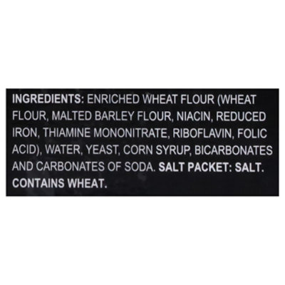 SuperPretzel Soft Pretzels Baked - 6 CT :: Directions for Me Nutrition Facts Serving Size: 1.0 pretzel Servings per Container: 6 Ingredients Enriched Wheat Flour (Wheat Flour, Malted Barley Flour, Niacin, Reduced Iron, Thiamine Mononitrate, Riboflavin, Folic Acid), Water, Corn Syrup, Yeast, Bicarbonates and Carbonates of Soda. Warnings Contains wheat. UPC 00073321000189