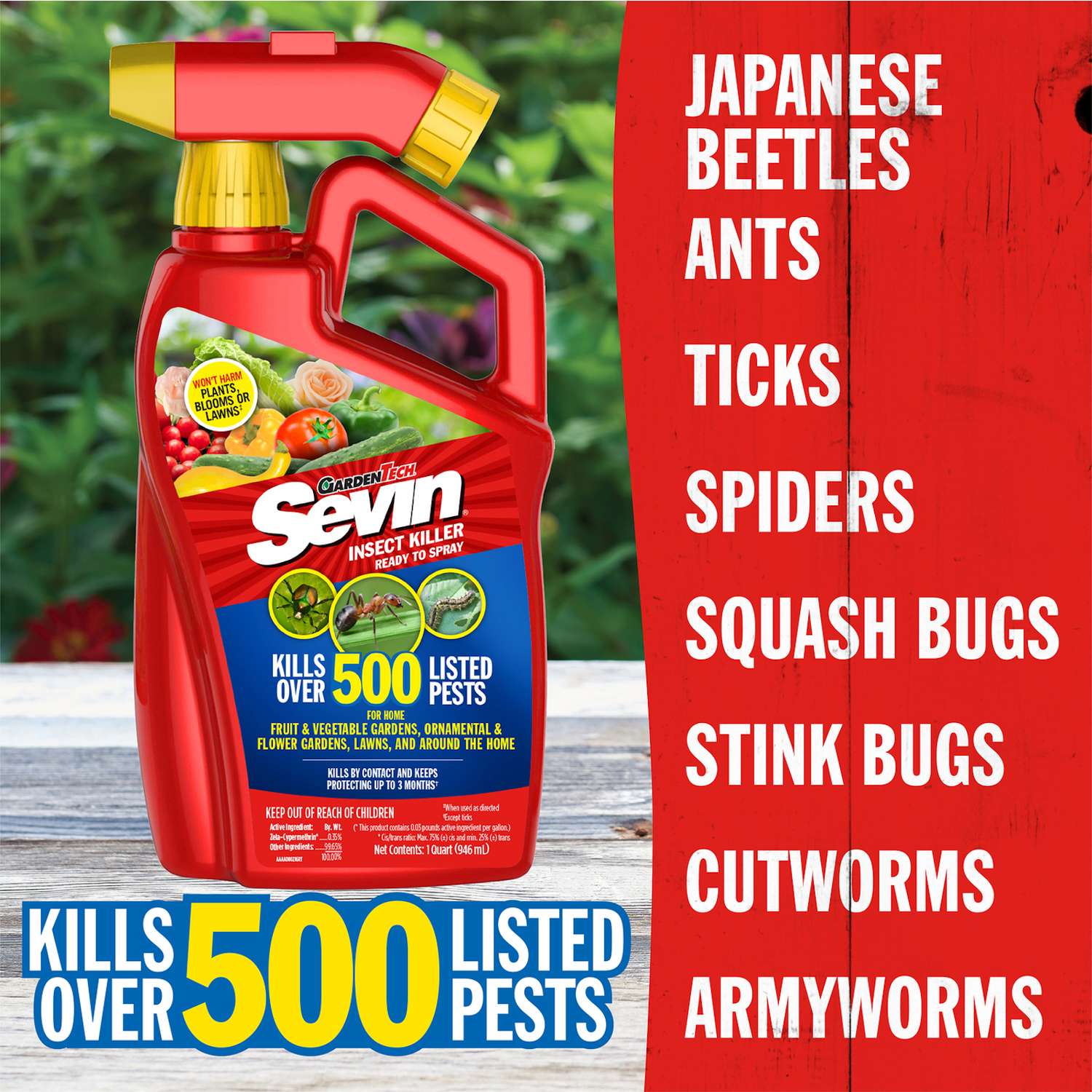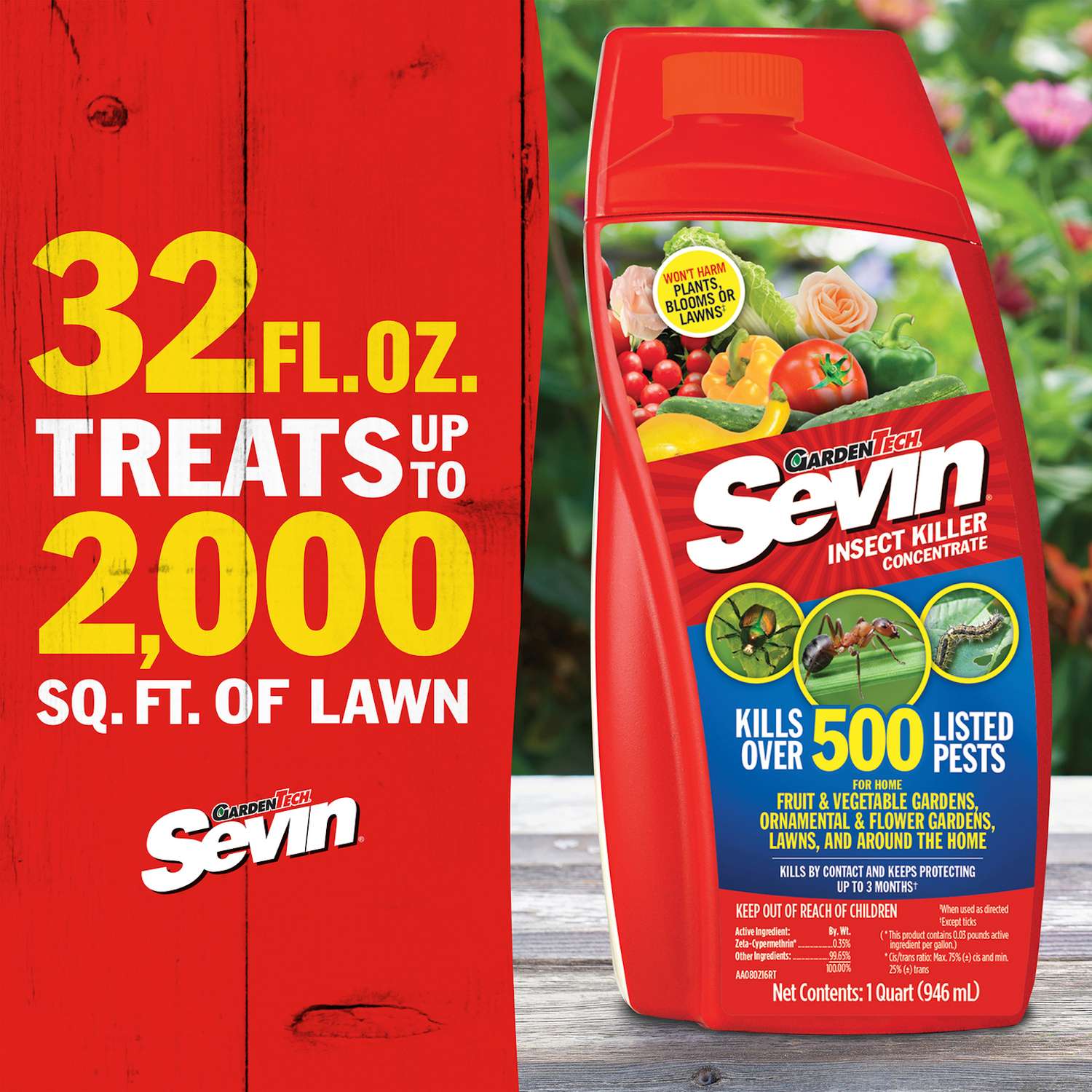 Sevin 32oz Concentrate Outdoor Insect Killer 100530123 - The Home Depot Sevin Insect Killer Concentrate kills more than 500 insect pests by contact and keeps protecting for up to 3 months. Use this to kill and control unwanted insects in ornamental and edible gardens, lawn and other areas around your home. This concentrate liquid is specially formulated to protect lawns, vegetables, flowers, fruits, trees, shrubs ...